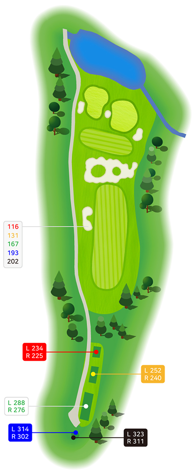 특히 그린 뒤 연못으로 거리 조절 실패 시 타수 손실 가능