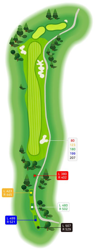 그린의 폭이 좁고 좌우로 길어 핀 위치에 따라 난이도 변동